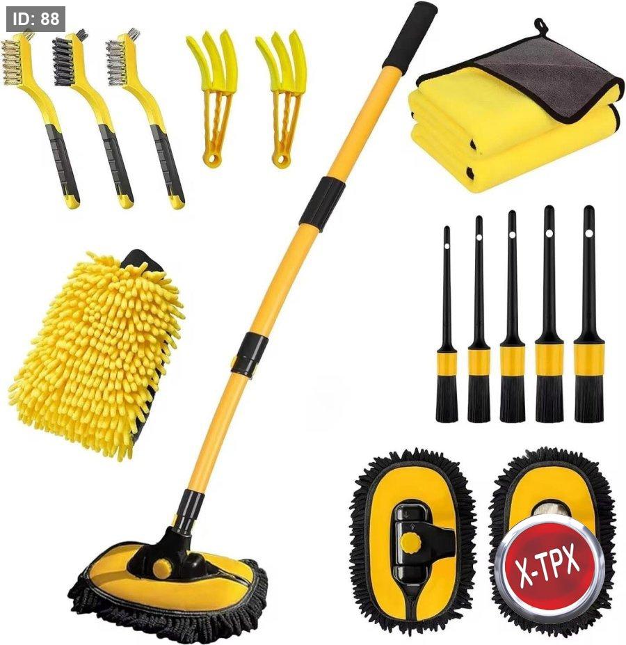 باكيج شامل لكل قطع غسيل السيارات مع مكنسة مميز باللون الأصفر